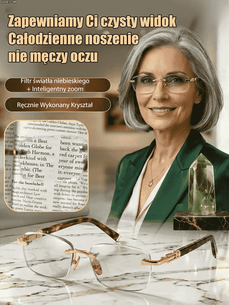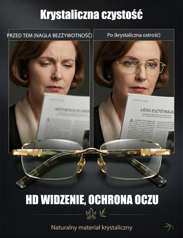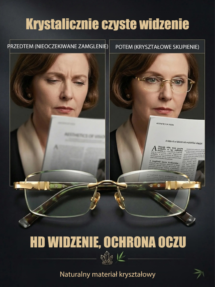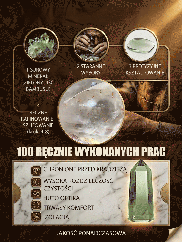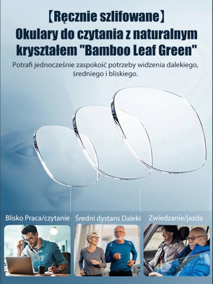 【Ręcznie szlifowane】Okulary do czytania z naturalnym kryształem "Bamboo Leaf Green"