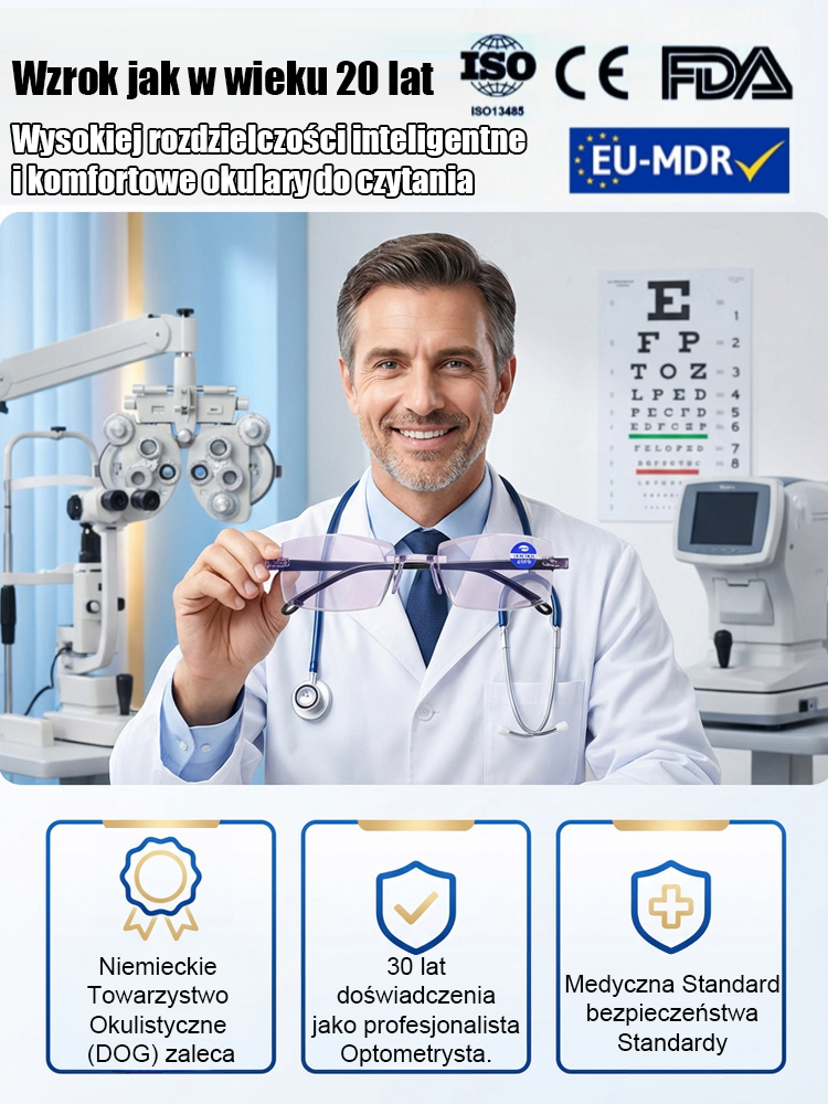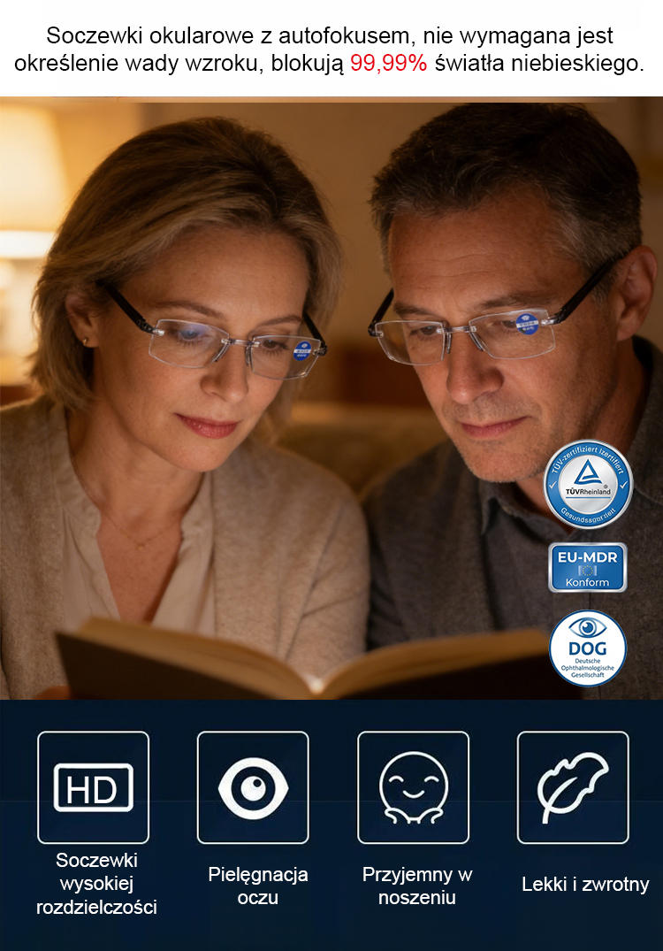 【Wzrok jak w wieku 20 lat】 Wysokiej rozdzielczości inteligentne i komfortowe okulary do czytania