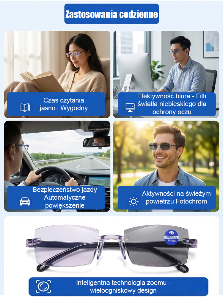 Wysokiej rozdzielczości inteligentne i komfortowe okulary do czytania