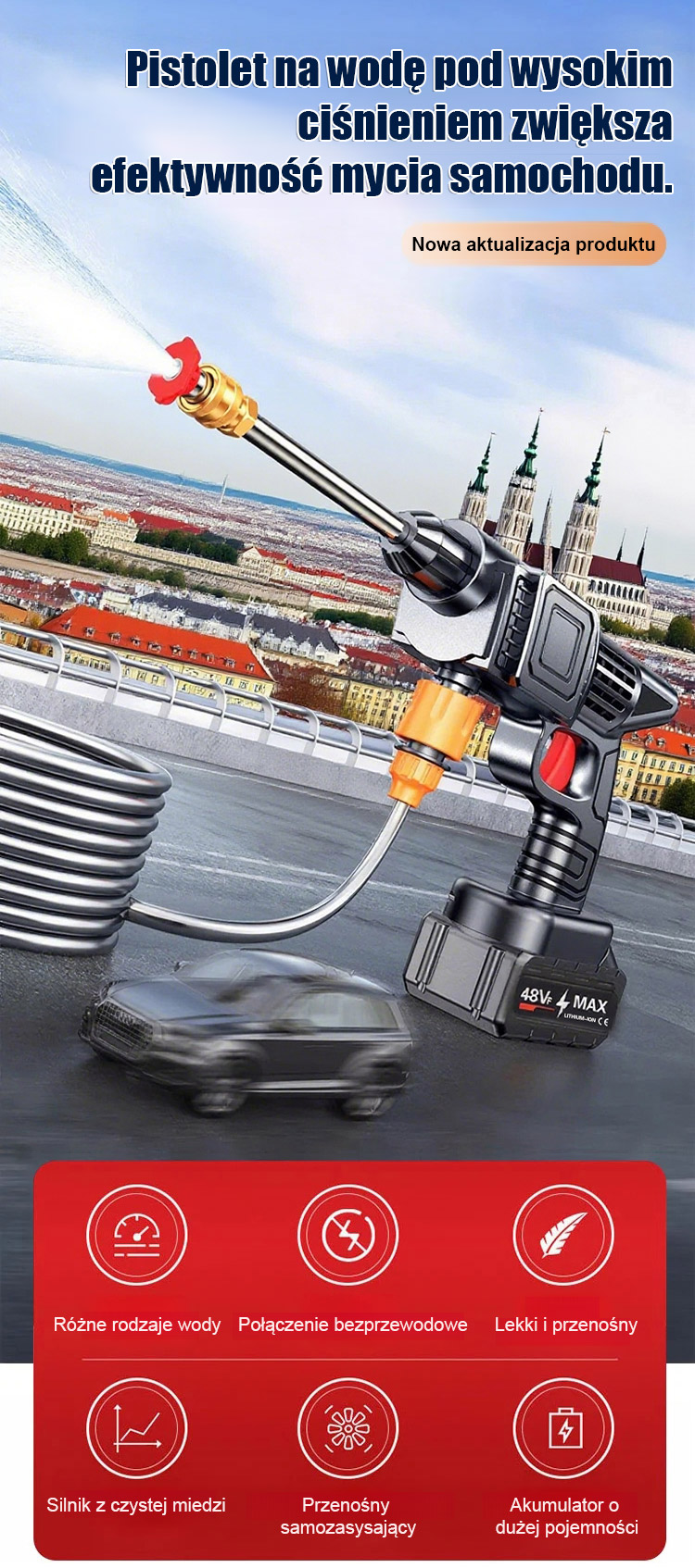 Domowy elektryczny wysokociśnieniowy pistolet na wodę do mycia samochodu